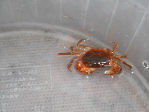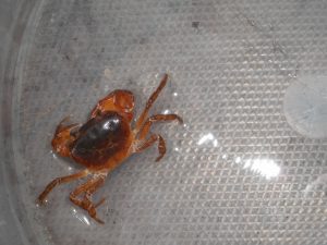 右のハサミが大きいので雄のサガガニです。撮影後沢に戻しました。