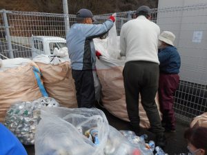 今年度も赤十字奉仕団のアルミ缶分別作業が始まりました。1月から3月までの厳冬期は休んでいたので、今日は大量の空缶が集まっていました。それでも、参加した皆さんは手際よく空き缶を分別し、分別を終えが物からトンバックに入れ、おおよそ1時間で終了しました。