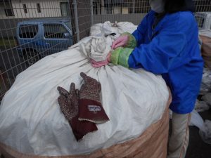 分別された缶をトンバックに入れます。