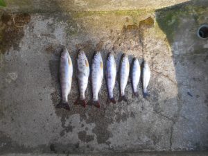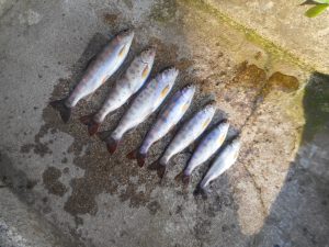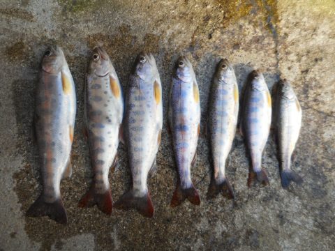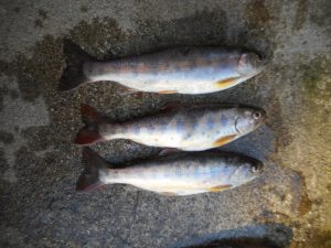 今朝の釣果です。一番小さいのはニジマスだったのでゲットしました。