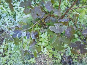 残っていたコウゾ葉にも霜が降りました。